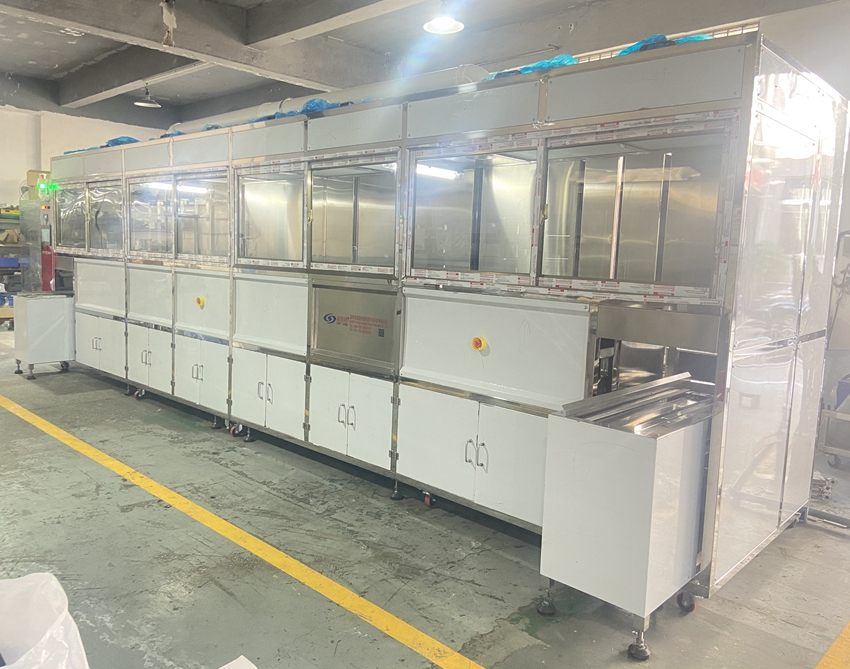 設(shè)備采用13工位槽體布局,涵蓋清洗、漂洗、慢拉脫水及離心甩干全流程。模塊化結(jié)構(gòu)支持根據(jù)工藝需求自由拆分組合,例如針對激光鏡片的鍍膜前清洗,可配置水基清洗劑槽與高純水漂洗槽,有效剝離粉塵、拋光粉及有機殘留物。