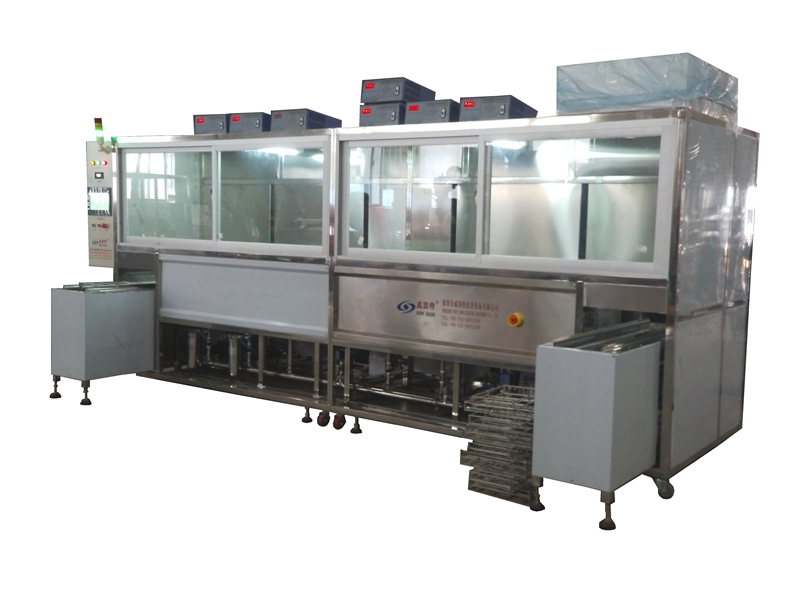 VGT-907FHA 為半導體配件自動智能式超聲波清洗機,設備共有 9 個功能槽,配置有循環過濾系統、自動恒溫系統、觸摸屏系統、拋動系統、超聲波清洗系統、預熱箱系統、溢流系統、鼓泡系統、酸洗系統、IPA 脫水系統等。